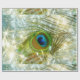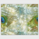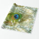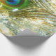 Papier d'emballage de vacances glamour avec belle plumes de paon, moules argentées et lumières de Noël scintillantes