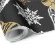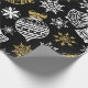 Cadeau Papier noir avec papier Motif de Noël blanc