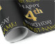 Ce design papier d'emballage comporte un message comme "HAPPY 4th BIRTHDAY", avec le "4th" ayant une apparence fausse/imitation or. Il comporte également un nom qui peut être customisé, et un arrière - plan de couleur noire. Il pourrait peut-être être utilisé pour envelopper les cadeaux donnés pour le quatrième anniversaire de quelqu’un. [~Z0000130]