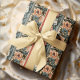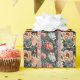 Un motif floral riche d'inspiration vintage avec alternance de panneaux verticaux de deux motifs distincts mais complémentaires. Un panneau est décoré dans des tons de charbon profond avec des pivoines de corail et d'ivoire, accentuées par le feuillage turquoise et terreux, évoquant une élégance moody. L'autre panneau contraste avec un arrière - plan crème chaleureux, orné de fleurs d'orange brûlé et de feuilles foncés, rappelant les imprimés botaniques classiques peints à la main. Des bordures décoratives ornées de rouge, bleu et or muet ajoutent une touche de sophistication supplémentaire. Idéal pour Noël ou anniversaires.