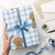 Papier d'enveloppement Goldendoodle adorable - En vichy bleu Arrière - plan Faites chaque cadeau spécial avec ce papier d'emballage charmant avec des chiots d'endoodle doré brun doux portant des arcs bleus, dressé contre un arrière - plan en vichy bleu classique. Le design ludique allie style champêtre intemporel et amour du chiot mignon, ce qui le rend parfait pour les anniversaires, les baby showers, les amoureux des animaux de compagnie et toute occasion joyeuse. Imprimé avec un motif extensible, ce papier apporte chaleur, plaisir et personnalité à chaque cadeau que vous enveloppez.