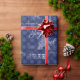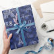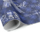 La Tour Eiffel, les mots "Joyeux Noël", Paris en typographie vintage, et les étiquettes vintages pour le champagne et le cacao en blanc sur un arrière - plan bleu profond aux flocons de neige bleu pâle confèrent un beau et intéressant papier d'emballage de Noël à thème français. Les articles correspondants sont disponibles dans mon magasin Zazzle.