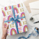 Enveloppez vos cadeaux dans du papier glamour pour votre fille d'anniversaire glitzy. Arc-en-ciel en parties scintillant or et rose sur papier d'emballage d'anniversaire blanc. Personnalisez le nom et l'âge pour un 12e anniversaire personnalisé.