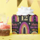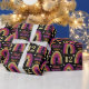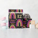 Arc-en-ciel en parties scintillant or et rose sur papier d'emballage d'anniversaire noir. Personnalisez le nom et l'âge pour un 12e anniversaire personnalisé. Enveloppez vos cadeaux dans du papier glamour pour votre fille d'anniversaire glitzy.