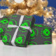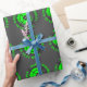 Peinture personnalisée Anniversaire fête Enveloppement Papier rouleaux. Amusant design motif avec des poils de croix et un plateau de peinture vert néon. Couleur arrière - plan personnalisable. Un cadeau amusant pour petits et grands. Personnalisez avec un nom et un salut personnalisés. Disponible en finition mate et brillante.