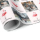 Papier d'emballage photo de Noël avec flamants roses dans les tenues Père Noël sur un arrière - plan rose et les mots "Joyeux Noël". Ajoutez simplement vos photos, ajoutez ce papier d'emballage à votre panier et préparez-vous pour les cadeaux de Noël ! Père Noël Flamant rose rose Noël Emballage photo Papier Jour férié Design | ©Melissa Patton - Artiste/Illustrateur