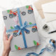 Ce document d'emballage cadeau de Noël de cool comporte Père Noël sur une basse motocyclette de cavalier, avec un arbre de Noël derrière lui ...... qu'il est sure cool de Père Noël !