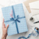 Cadeau Petit papier d'emballage de guingan bleu-clair et