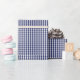 Un papier d'emballage a conçu avec un motif de guingan de bleu marine et de blanc dans de petite taille.