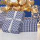 Cadeau Petit papier d'emballage de guingan de bleu marine