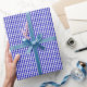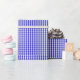 Un papier d'emballage a conçu avec un motif de guingan de bleu royal et de blanc dans de petite taille.