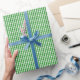 Un papier d'emballage a conçu avec un motif vert et blanc de guingan dans de petite taille.