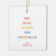 Donnez à maman un souvenir sincère qu’elle chérira pour toujours ! Ce magnifique ornement en céramique présente les mots "Hey Maman, Merci pour tout" dans un design joli et coloré sur un côté, avec espace pour une photo de famille personnalisée sur le dos. Parfait pour la Fête des Mères, Noël, ou toute occasion, cet ornement est une façon significative de montrer votre amour et votre appréciation. Accrochez-le sur l'arbre, affichez-le toute l'année ou offrez-le comme un rappel spécial de moments familiaux précieux. 💖 ✨ 🎁