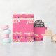Papier d'emballage coloré Joyeux Noël pour enfants et adultes. Design ludique avec ampoules colorées et des saisons personnalisées message de bienvenue. Personnalisable avec le nom de l'adulte ou de l'enfant. Couleur arrière - plan rose ou personnalisée. Enveloppe cadeau personnalisée.