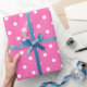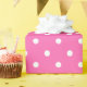 Un papier d'emballage construit avec un motif de point blanc de polka avec une grande distance entre les points sur un arrière - plan rose. Customisez l'arrière - plan rose d'une manière simple.