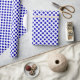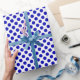 Un papier d'emballage construit avec un motif royal à points de polka bleu sur un arrière - plan blanc. Customisez facilement le arrière - plan blanc.