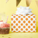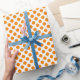 Cadeau Point Polka orange sur papier à envelopper blanc