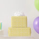 Cadeau Polka jaune d'or sur papier à envelopper blanc