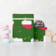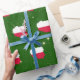 Présentez votre amour pour le pays de la Pologne cette saison des Fêtes avec ce papier d'emballage unique de Noël avec une carte de la Pologne remplie des couleurs du drapeau polonais.