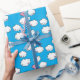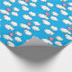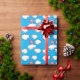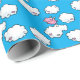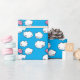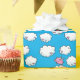 Papier d'emballage comportant un motif de répétition d'un porc numérique de rose de bande dessinée avec de petites ailes blanches, danses sur des nuages embellis avec des coeurs dans le ciel bleu lumineux