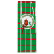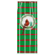 Ce sac cadeau à vin a un arrière - plan vert avec des lignes rouges et blanches qui forment un motif de carré. Au centre il y a un cercle blanc avec une couronne à feuillage persistant et le cardinal.