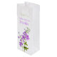 Montrez votre reconnaissance à votre mère de la mariée ou d'autres mariages avec ce cadeau de mariage cadeau sac à vin. Parfait pour remplir avec une bouteille de vin spéciale pour montrer votre appréciation. Un joli sac cadeau de fleurs en delphinium d'aquarelle botanique en blanc, violet lilas et vert. Correspond à une gamme d'autres produits mariages de la gamme d'art delphinium. Customisez / personnalisez ces sacs cadeaux de faveur avec votre titre, nom et un message personnel ou des remerciements. On lit actuellement Merci Bridesmaid Rebecca. Uniquement conçu par Sarah Trett.