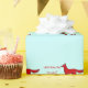 Que dit le Fox, renard rouge sur papier bleu avec des mots venant de sa bouche.