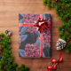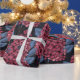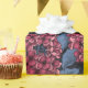 Cadeau Rouge lilas sur papier d'emballage bleu foncé