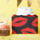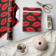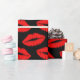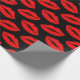 Juste beaucoup de rouge à lèvres brillant embrasse sur du papier d'emballage noir. Convient à tous les cadeaux enveloppés d'amour.