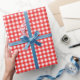 Cadeau Rouge| Papier blanc à enveloppement En vichy