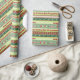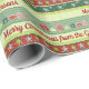 Vous pouvez personnaliser ce papier d'emballage de Noël avec votre propre salutation ou nom. Vous pouvez également le supprimer entièrement en supprimant le texte "Personnaliser ici". Le design comprend des rubans rouges et verts avec des illustrations de paquets emballés et de flocons de neige.