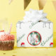 Adorable Saanen avec son chapeau de Père Noël et dans le cercle rouge est une chèvre de bébé découvrant les ornements sur l'arbre - chèvres décorent ce papier d'emballage de Noël très cool amant de chèvre. Joyeux Noël écrit en texte vert - vous pouvez customiser le texte si vous le souhaitez