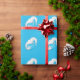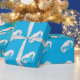 Papier d'emballage bleu tropical de Noël avec hippocampes blancs et ornements de vacances. Tout sur bleu vif la vie marine design sur un rouleau avec options.