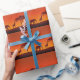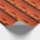 Arrière - plan africain de paysage de safari comportant des silhouettes d'une girafe, d'un arbre et d'un éléphant contre le coucher du soleil aux nuances de couleur orange et rouge.