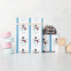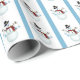 Ce papier d'emballage présente des bonhommes de neige joyeux tenant des ornements de Noël de flocon de neige. L'arrière - plan de papier a une bande bleue de coordination tout au long.