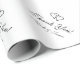 Chic mariage party préférez remercier le papier d'emballage. Papier d'emballage personnalisé pour les cadeaux symboliques aux invités ou aux jeunes mariés. Ajoutez votre propre message personnalisé. Logo élégant des coeurs qui s'emboîtent. Design romantique noir et blanc avec nom de mariée et mariée / couple marié. Stylish script typographie modèle emballage cadeau pour les amis et la famille.