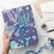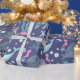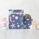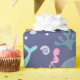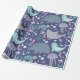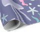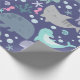 Ce papier d'emballage sur le thème de la mer présente une baleine, un requin tigre, de la gelée, une tortue de mer et un hippocampe nageant dans une mer marine bleue profonde.