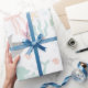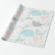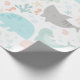 Envelopper un cadeau pour un baby shower ou un nouveau bébé dans ce papier d'emballage pastel sur le thème des animaux de mer comporte une baleine, requin tigre, gelée, tortue de mer et hippocampe avec l'herbe de mer, les coquilles et l'étoile de mer.