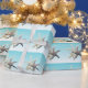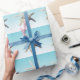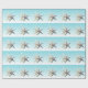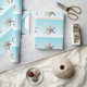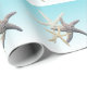 Trois étoiles de mer en bleu, papier d'emballage sur le thème de la plage pour anniversaire ou mariage. Commandez n'importe quel type et la taille rouleau de l'emballage cadeau.
