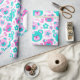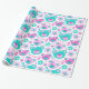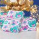 Des teintes pastel amusantes rose et aqua turquoise bleu vert ours en peluche visages et des fleurs graphiques répéter motif papier d'emballage d'anniversaire, parfait pour une fille 3ème anniversaire. Personnalisez avec votre propre nom de fille d'anniversaire et l'âge à un chiffre, actuellement lit Amelia 3. Graphisme conçu par Sarah Trett.