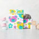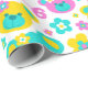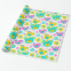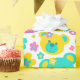 Des teintes pastel amusantes rose et aqua turquoise bleu vert ours en peluche visages et fleurs graphiques répéter motif papier d'emballage d'anniversaire, parfait pour une fille 6e anniversaire. Personnalisez avec votre propre nom de fille d'anniversaire et l'âge à un chiffre, actuellement lit Evelyn 6. Graphisme conçu par Sarah Trett.