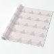 Papier d'emballage de Noël rose avec rayures de chevron blanc et un mignon arbre de vacances.