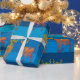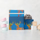 Cerf, flocons de neige, papier d'emballage à rayures bleues pour le Nouvel An et le temps de Noël enveloppement spécial.