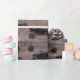 Dessins d'une variété de voitures ou d'anciens sur un arrière - plan taupe avec des pierres de brique et des imprimés de journaux. Envelopper un cadeau parfait pour un amoureux plus âgé.
