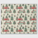 Le papier d'emballage coloré présente des voitures fantaisistes entourées d'arbres de Noël décorés, d'étoiles et de flocons de neige, créant une atmosphère de vacances délicieuse, parfaite pour l'emballage cadeau.