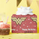 Personnalisez ce papier d'emballage d'anniversaire Wonder Woman avec le nom de votre enfant.