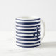 Cadeaux thématiques nautiques - mugs classiques blancs et bleu marine personnalisés avec ancre bleu marine sur bandes et texte personnalisable où vous pouvez ajouter votre nom ou tout autre texte. De beaux cadeaux pour anniversaire, Noël ou tout autre jour...