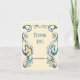 Cette carte de correspondance exquise présente une bordure proéminente et ornée dans le style Art nouveau, caractérisée par ses lignes fluides et organiques ainsi que ses motifs floraux stylisés. La bordure, rendue dans des nuances de bleu, de vert et d'or avec une apparence vieillie ou texturée, encadre une zone centrale de couleur crème plus clair destinée à l'écriture. L'esthétique générale évoque une sensation vintage ou classique, ce qui la rend appropriée pour diverses occasions nécessitant une touche d'élégance.
