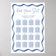 Aidez les clients à trouver leurs tables avec cette affiche de Mariage moderne à cadre bleu vague. Un arrière - plan blanc avec une bordure bleue ondulée audacieuse encadre jusqu'à 16 tables, avec des noms d'invités disposés sous chaque titre. En haut, "Trouvez votre siège" est affiché en écriture bleue manuscrite, tandis que vos noms et la date du mariage apparaissent ci-dessous. Disponible sous forme d'impression professionnelle ou de téléchargement instantané pour imprimer à la maison.