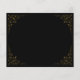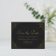 Cette élégante carte de mariage formelle vintage inspirée présente le texte en écriture de couleur or et en polices serif, encadré par un délicat motif de vigne dorée vintage sur fond noir. Le cadre est répété au verso.